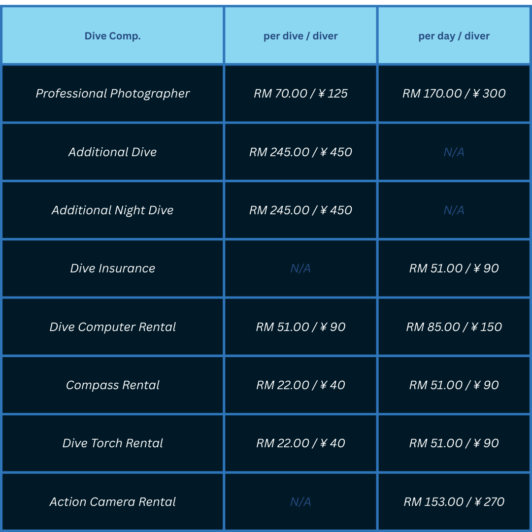 11. Only certified divers (last dive less than 6 months) are allowed for reservation / booking for diving packages.